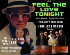 The singers and the 7-piece band, that brought 'Local Cohen', 'Homeward Bound' and 'Can't Keep It In' to the stage in Bradford on Avon and Frome, now present the songs of Elton John performed in a live show called 'Feel The Love Tonight'. Songs including Rocket Man, Candle In The Wind, Saturday Night's Alright for Fighting and Your Song will have you singing along. The songs will be performed in two sets with an interval.