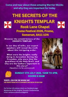 Come and discover the untold history of these intriguing warrior-monks who have fascinated the world for over 700 years. In our day of talks, our expert speakers will reveal the stories behind the conventional history: what were the knights really doing in Jerusalem during the Crusades, why were they called the guardians of the Holy Grail, and why are the Cathars also important in this story?